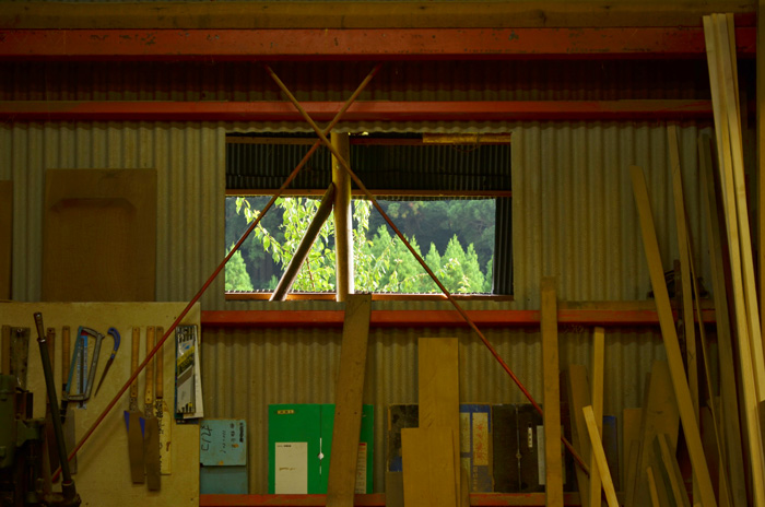この工房はもともと北山杉の倉庫だったので入り口のシャッター以外窓がありません。