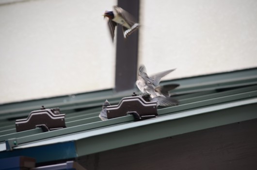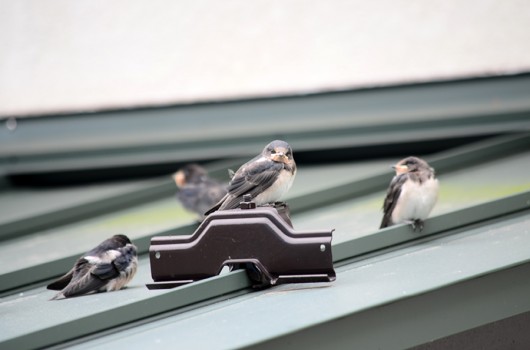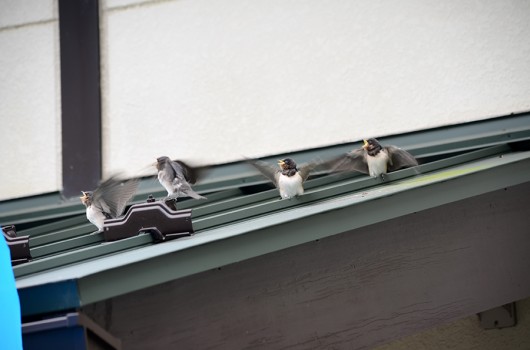 それでも巣立って直ぐは遠くに行けないらしく屋根の上で兄弟たちが集まってました。