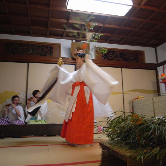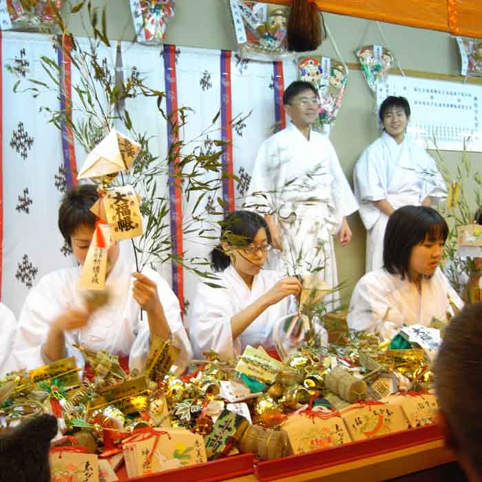 本堂の横では巫女さんが踊り狂いながら笹を売っている・・・