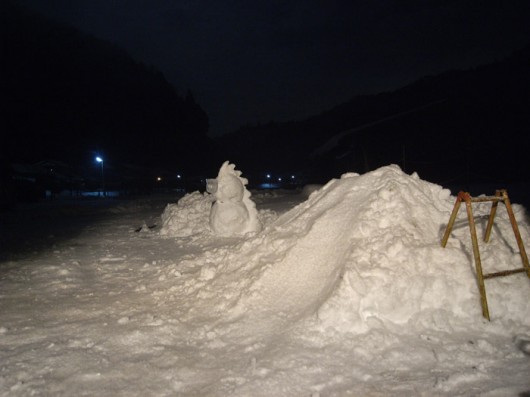 奥にみえるのは昨日遊びに来たsさんが作った怪獣?です。顔にはバケツの中で出来た氷を貼り付けました。水中眼鏡みたいです。来年は雪祭りをやる予定・・・